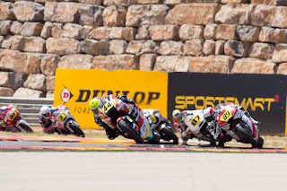 En la segunda carrera de Superbike, Carmelo Morales y Maximilian Scheib aprovechaban un problema de Santiago Barragán en los compases iniciales para escaparse en solitario. Por detrás, el piloto extremeño iba recuperando posiciones hasta colocarse tercero pero sin opciones de alcanzar a los dos escapados. Carmelo Morales y Maximilian Scheib se jugaron la victoria en una trepidante última vuelta donde el piloto español hizo valer la experiencia para superar al chileno y sumar la segunda victoria del día y hacerse acreedor de otro cheque de carburante Repsol.